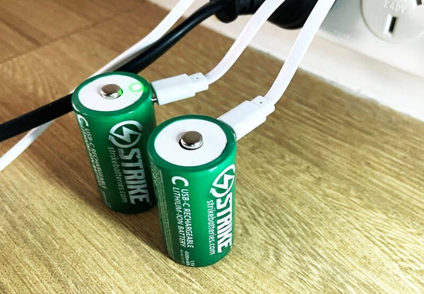 Power up your devices effortlessly with our Strike™ USB-C Rechargeable C size Battery 2 Pack. Featuring two high-capacity lithium-ion batteries, these are perfect for everyday use. Conveniently recharge them up to 1200 times with any standard USB-C charging cable, or use the included 2-head USB-C charger. Enjoy fast charging capabilities, reliable performance, while saving you money and reducing waste. These batteries are the cheapest and best value battery by energy usage.